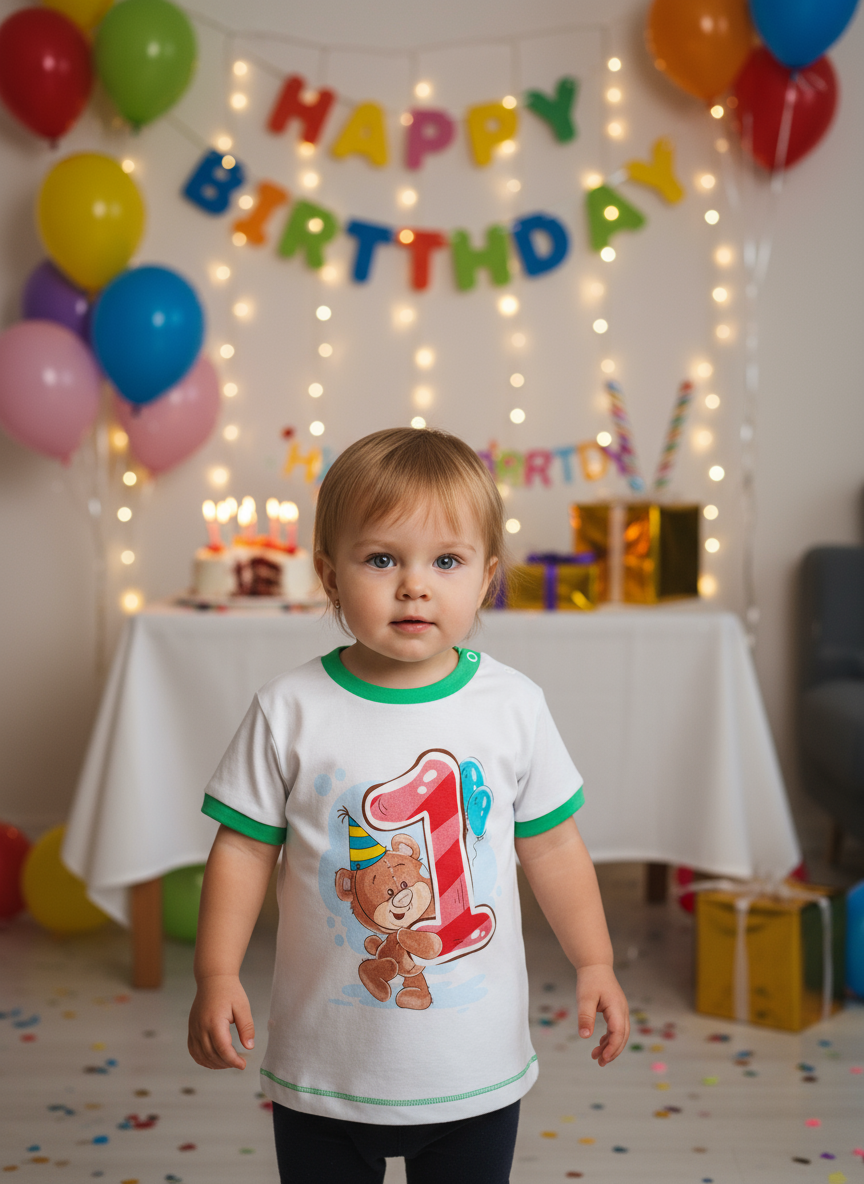 Футболка на кнопке с печатью 80-104 Ф-008
